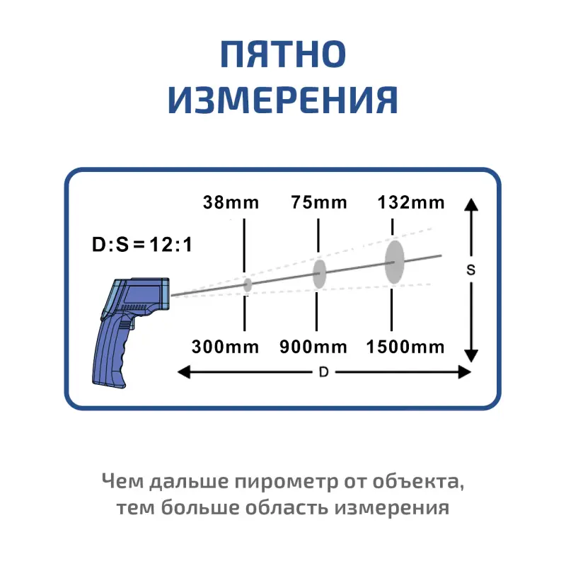 Оптическое разрешение пирометра составляет 12:1, что означает, что при измерении температуры объекта с расстояния 12 единиц прибор может точно определять температуру объекта, находящегося на расстоянии 1 единицы. Это делает МЕГЕОН 16555 удобным для работы в условиях, где доступ к объекту ограничен или небезопасен. Целеуказатель позволяет точно нацеливаться на объект, что значительно упрощает процесс измерения.