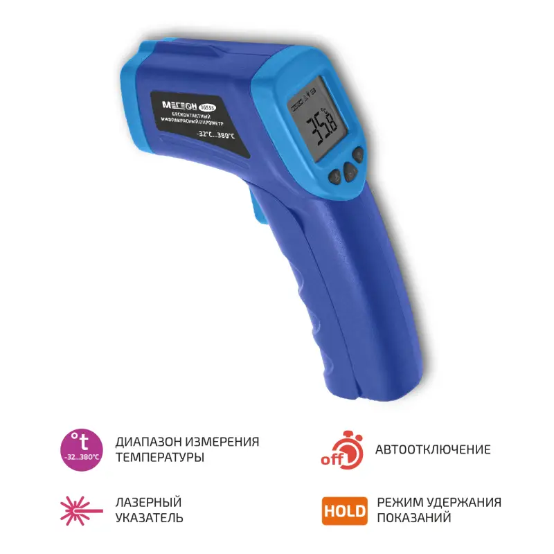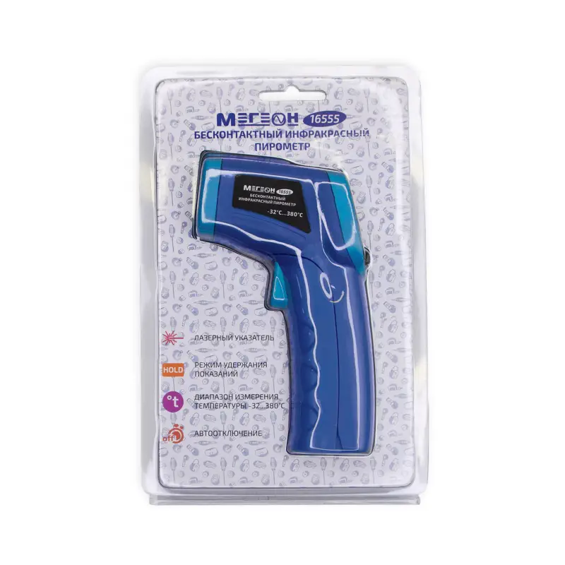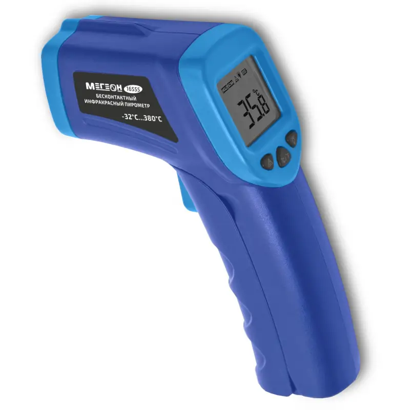 Бесконтактный инфракрасный термометр (пирометр) МЕГЕОН 16555 представляет собой современный и высокотехнологичный инструмент, предназначенный для точного измерения температуры различных объектов без необходимости физического контакта. Этот прибор идеально подходит для применения в самых разных сферах, включая промышленность, строительство, а также в быту, где требуется быстрое и безопасное измерение температуры.