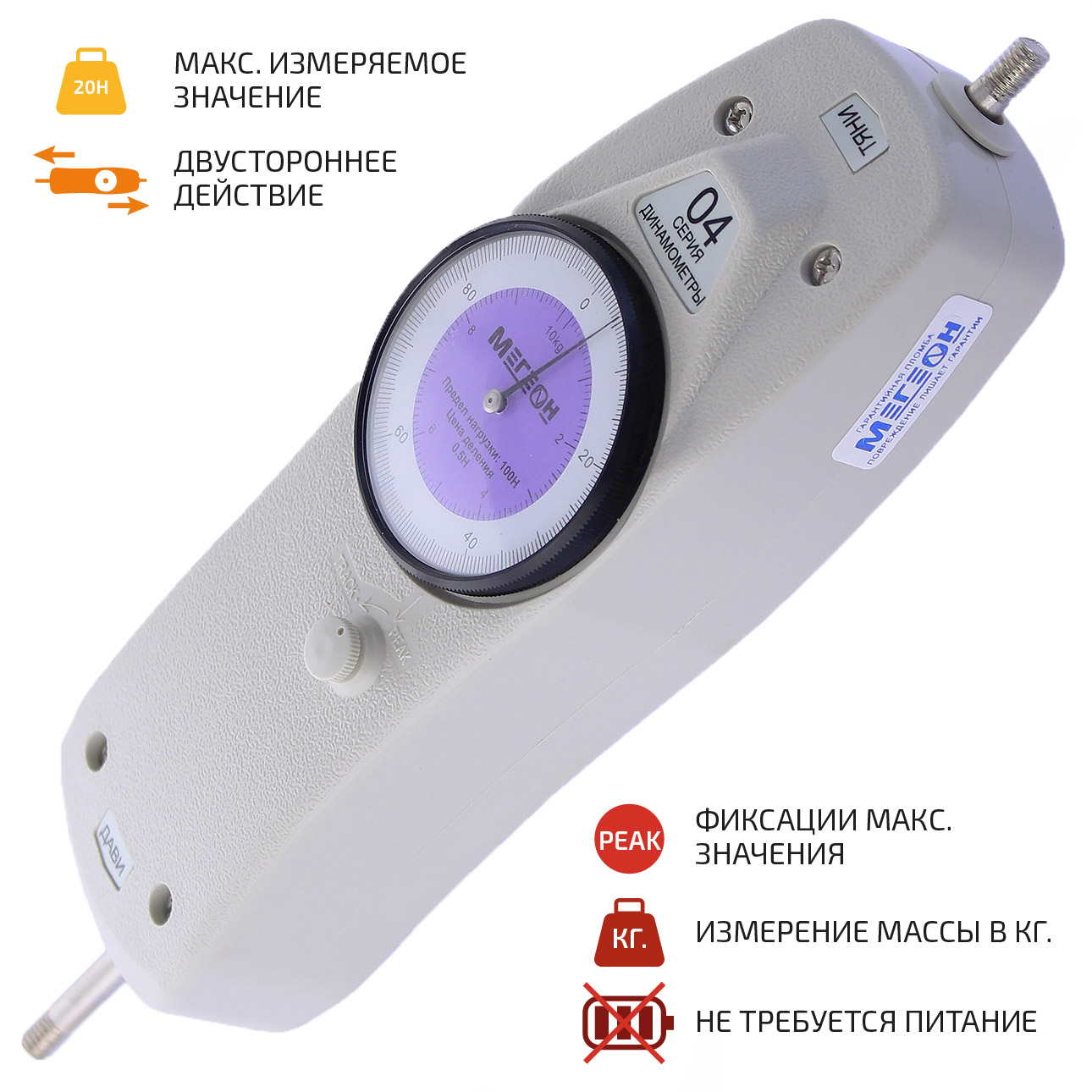 МЕГЕОН 04020 - высокоточный динамометр для проведения измерений в профессиональной деятельности, лабораторных и учебных целях. Прибор даёт возможность c высокой точностью производить замеры усилий в пределах 0,1 ... 20 Н. Эксплуатация проста, удобна и не требует специальных навыков. Достаточно закрепить необходимую оснастку на шток, установить испытуемый объект и на циферблате отобразятся измеренные параметры. Дополнительно имеется функция проводить измерения с фиксацией полученных значений. В комплекте поставки предусмотрено всё необходимое для осуществления испытаний на растяжение и сжатие. Помимо этого возможна имитация нагрузок на излом в составе динамометрического стенда. Механизм изделия изготовлен из качественных сталей, что напрямую связано с долговечностью использования и работой без поломок.