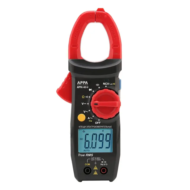 Клещи электроизмерительные APPA 40 представляют собой многофункциональный прибор, предназначенный для профессионалов, которым необходима точность и надежность в повседневной работе. Устройство сочетает в себе возможности токоизмерительных клещей и полноценного мультиметра, что позволяет проводить комплексную диагностику электрооборудования без необходимости использования нескольких инструментов. Одной из ключевых особенностей является способность измерять переменный и постоянный ток до 1000 ампер, что делает аппарат незаменимым при работе с мощными промышленными установками и бытовыми сетями. Высокое разрешение по току в 10 мА обеспечивает точное считывание даже незначительных нагрузок.