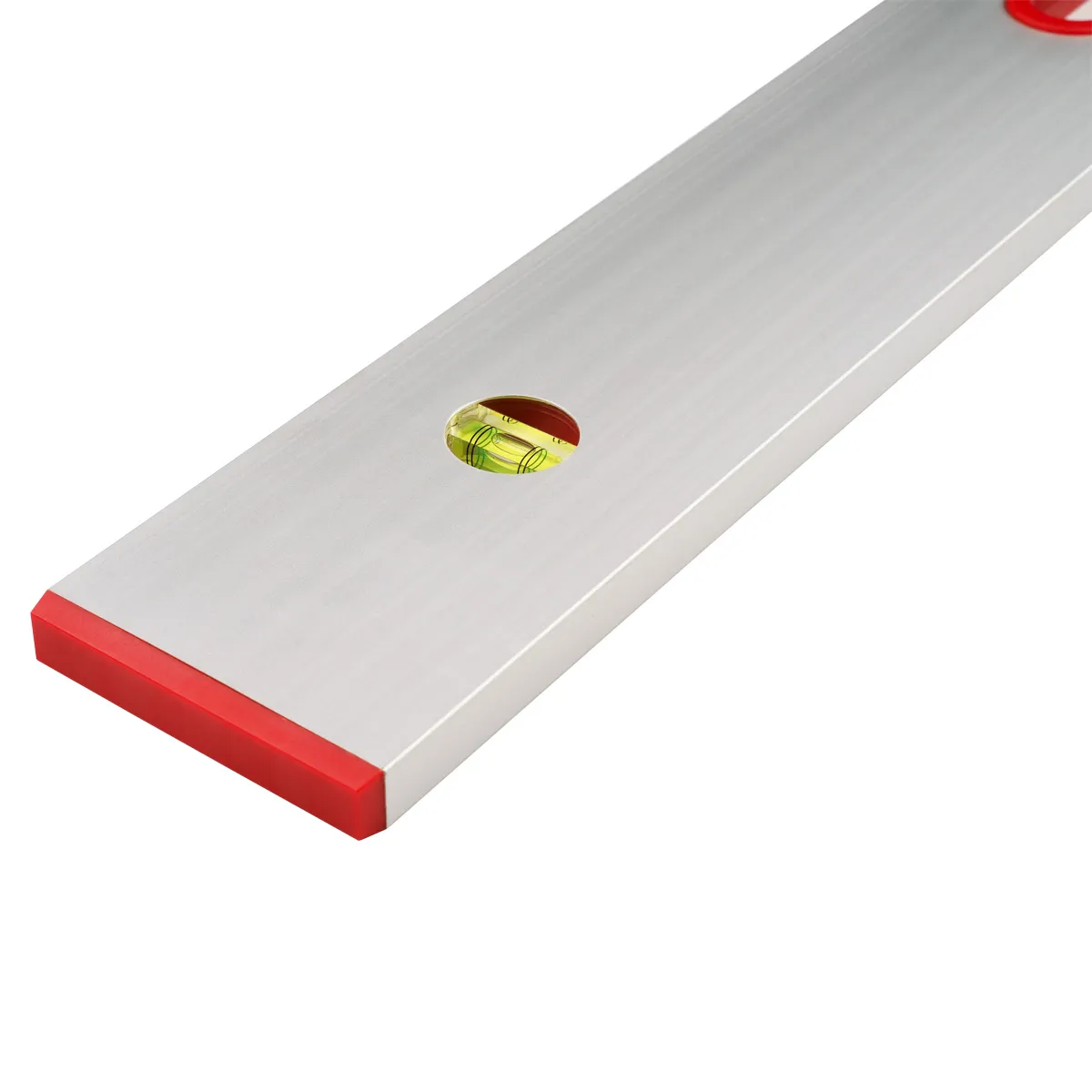 Уровень изготовлен из легкого, но прочного алюминиевого сплава, и оснащен двумя колбами (точность 1 мм/м), который расположены перпендикулярно друг другу. Рабочая длина составляет 1500 мм, благодаря чему правилом удобно пользоваться в коридорах, проходах и других достаточно узких пространствах. Кроме того, оптимальная длина также упрощает переноску оп объекту и транспортировку к месту проведения работ.